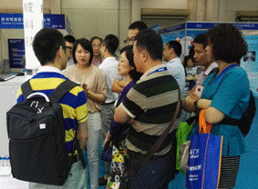 在爱威科技的C07展馆内,红色的霓虹灯熠熠闪光,展厅布置简洁优雅,引人注目。展馆内,前来参观、咨询以及洽谈的人源源不断。工作人员耐心细致地为大家进行讲解与演示。尤其是AVE-562粪便分析仪的展出,博得了大家的高度关注,不断有观众前来参观和咨询。其智能化和独具一格的设计以及高检出率和准确性获得了大家的一致认可。