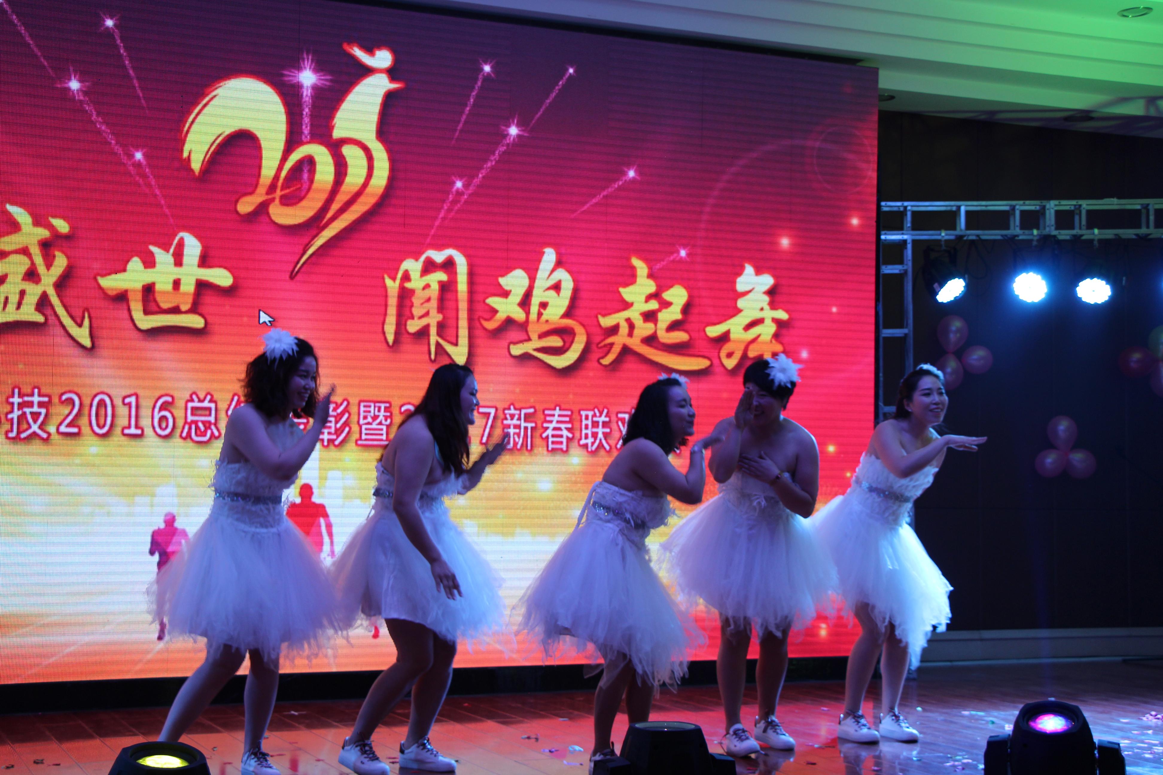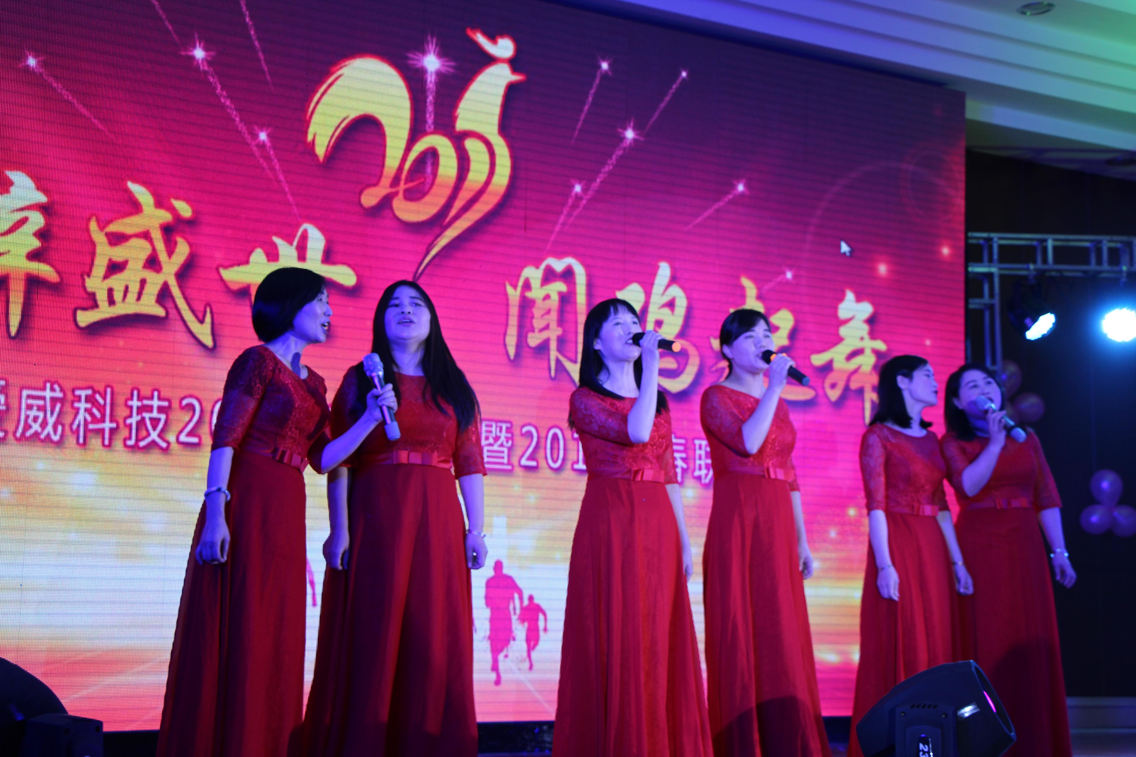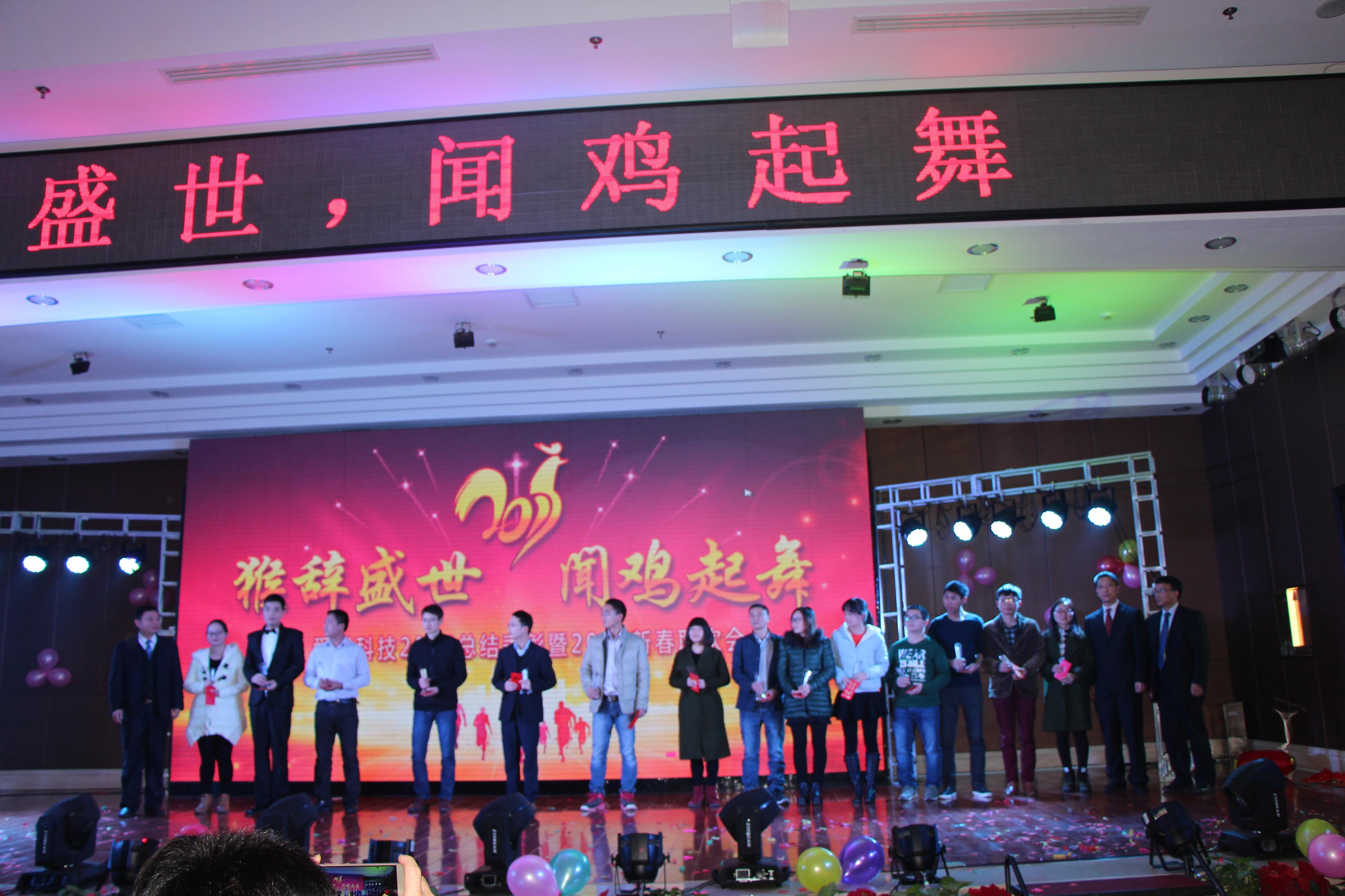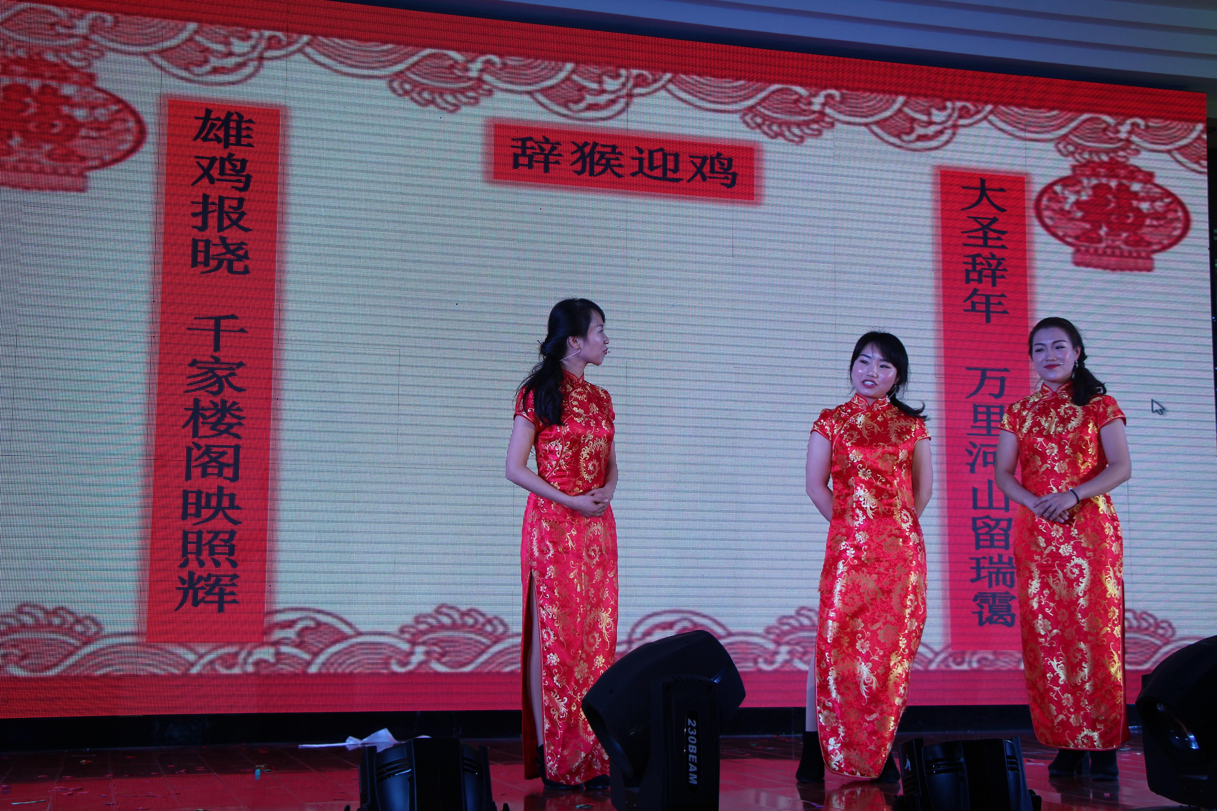 联欢会现场,由公司12个部门及员工家属共选送了17个自编、自导、自演的精彩节目,先后一一亮相。节目形式各异,包括歌、舞、脱口秀、小品、相声、朗诵等,期间还穿插着2轮总结表彰及4轮现场抽奖,不断将联欢会气氛推向一个又一个高潮,为大家奉献了一场高规格的视听饕餮盛宴。最后,联欢会活动在一首由公司副总经理林常青亲自撰稿的诗朗诵《十七年风雨路•新起点新征程》中完美落下帷幕。