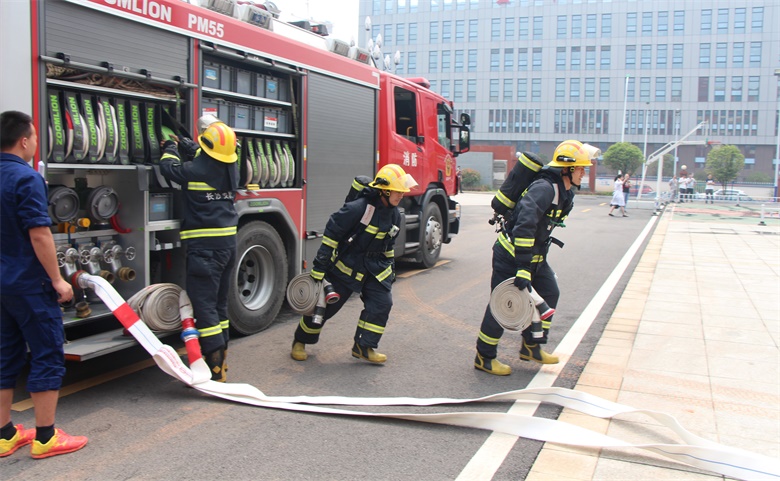 2020年5月14日上午,在岳麓高新区相关领导及工作人员的带领下,岳麓区消防大队五星中队消防员来爱威科园进行了一次消防大比武,在比武赛场上接受实战检验,致力于打造岳麓区应急救援主力军,当好党和人民的“守夜人”。米乐m6网页版登录入口全体员工也积极参与到此次紧急疏散演练的实战中。